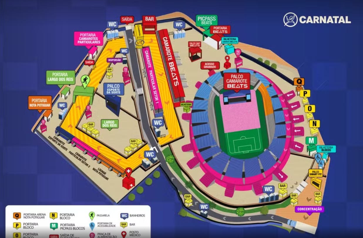 O Carnatal começa na sexta-feira (6) e segue até o domingo (8), no entorno da Arena das Dunas.