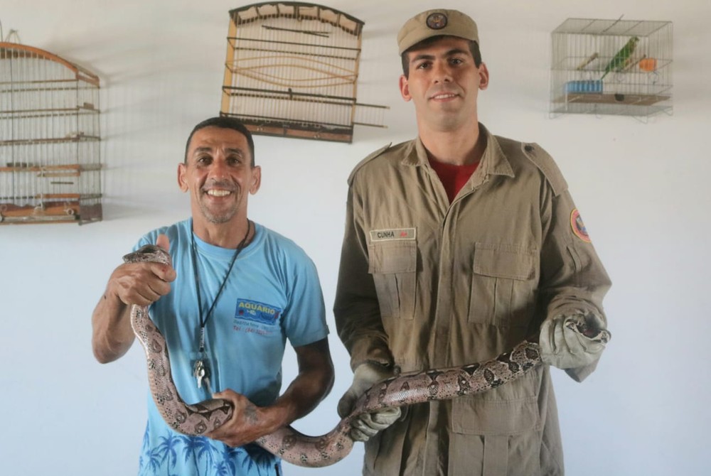 Após o chamado da população, três militares do Grupamento de Busca e Salvamento (GBS) foram ao local e encontraram a cobra intacta, presa pelos moradores.