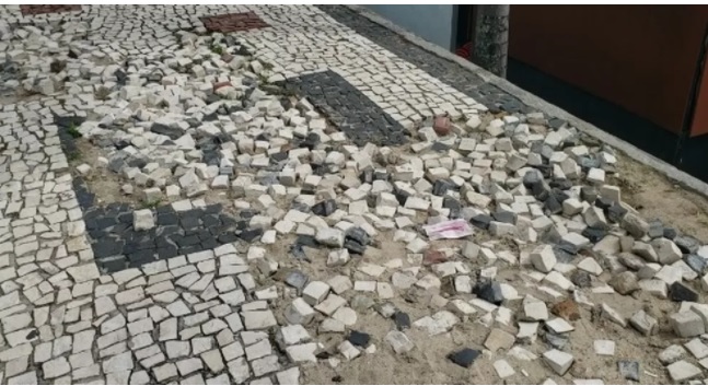 Muitas das pedras que formam o calçadão estão soltas, deixando o espaço irregular e com buracos e causando riscos aos que passam.