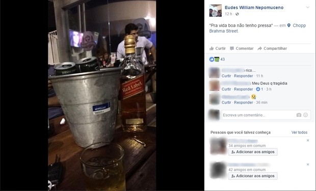 A postagem foi feita às 23h30 na quinta-feira (27). A foto, de um balde de gelo e uma garraga de whisky, estava marcada em uma cervejaria localizada na cidade de Mossoró, no Oeste potiguar. “Pra vida boa não tenho pressa”, diz a legenda da foto.