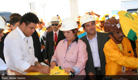 As obras do estádio Arena das Dunas receberam mais uma vez a visita de dirigentes da Federação Internacional de Futebol (FIFA), membros do Comitê Organizador Local (COL) e representantes do Governo do Estado e do Ministério dos Esportes. A governadora Rosalba Ciarlini visitou lotes da construção acompanhada do secretário-geral da Fifa, Jérôme Valcke; dos ex-jogadores de futebol e membros do Conselho de Administração do Comitê Organizador Local da Fifa, Ronaldo Nazário e Bebeto Freitas; de Luiz Fernandes, secretário executivo do Ministério dos Esportes e dos secretários Municipal e Estadual Extraordinários da Copa do Mundo em Natal, Jean Valério e Demétrio Torres.