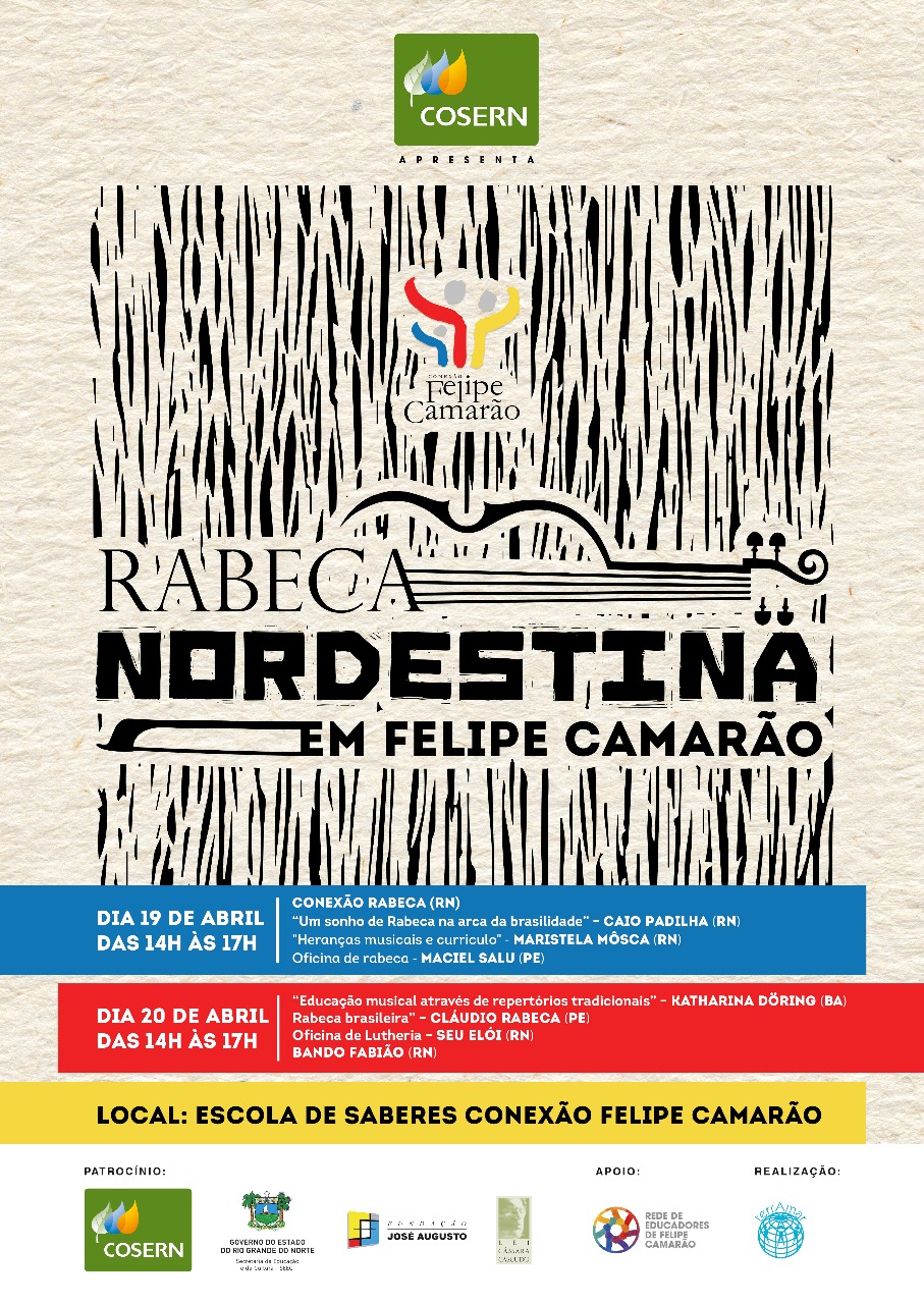 Rústica e com sonoridade singular, a rabeca é destaque em evento realizado pelo projeto Conexão Felipe Camarão que acontece hoje (19) e sexta-feira (20) em Natal/RN, das 14h às 17h. Com entrada gratuita, tem patrocínio da COSERN, Governo do Estado do Rio Grande do Norte e Fundação José Augusto, através da Lei Câmara Cascudo; apoio Rede de Educadores de Felipe Camarão e realização Terramar. O “Rabeca Nordestina” proporciona palestras, debates e oficinas gratuitas em torno do instrumento.