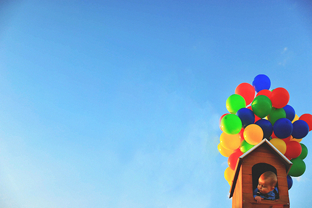 Ambos foram feitos pela fotógrafa Larissa Lamp, de Pato Branco, no Paraná, que é fascinada por filmes infantis. Um dos seus preferidos é o Up, motivo pelo qual vive criando ensaios inspirados na animação norte-americana. No último, Larissa clicou Caetano em fotos todas ambientadas no filme, com direito a balões, catioro e gravatinha borboleta. O resultado é puro amor, dá uma olhada: