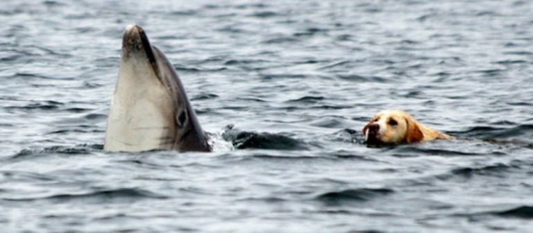 Na Ilha Tory, na Irlanda, dois improváveis melhores amigos chamaram a atenção de curiosos e fãs de animais: um cão e um golfinho. O labrador chamado Ben nada no porto todos os dias ao lado de Duggie, um golfinho fêmea.