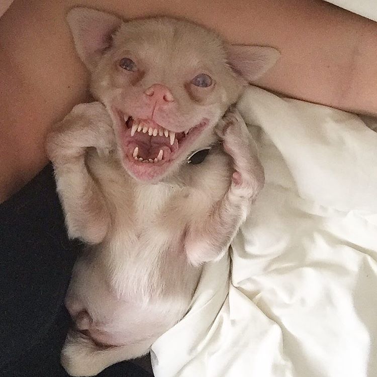 O amor entre dono e um animal vai muito além da raça, da fofura ou da beleza. E nada é mais capaz de garantir a felicidade que esse sentimento. Prova disso é o cãozinho Tucker, que está fazendo sucesso na internet por sua alegria e por, bem, parecer com um morcego. Aos 3 anos e sem raça definida, Tucker sofre de Mucopolissacaridose (MPS), uma doença que pode causar algumas deformidades e outras complicações, como dificuldades motoras. Ele não consegue se apoiar nas patas dianteiras, o que não o impede de se movimentar e se divertir. Por causa da MPS, o rosto de Tucker lembra um pouco o de um morcego, especialmente quando ele abre o largo sorriso que já cativou quase 80 mil seguidores no Instagram. O cão não abre mão de passear pelo jardim e de brincar com outros animais.Apesar de não ser cego, ele tem a visão um tanto embaçada, o que o atrapalha a enxergar alguns detalhes e obstáculos. A solução para isso é tão eficiente quanto bonitinha: às vezes ele usa óculos de proteção que simplesmente extrapolam os níveis de fofura.