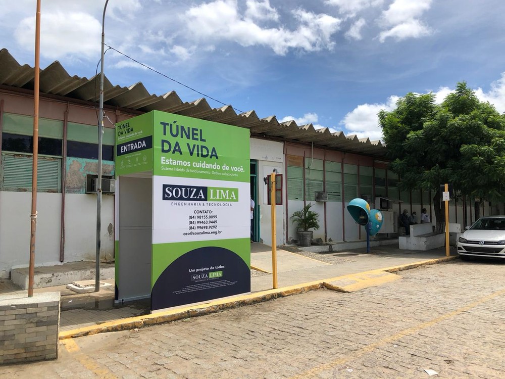 Chamado de túnel da vida, o equipamento tem sensores de aproximação e pode desinfectar o vírus para impedir que as pessoas se contaminem, segundo os idealizadores. A estrutura foi montada no Hospital Regional de Currais Novos e vem sendo usada entre os profissionais da saúde desde terça-feira (5).