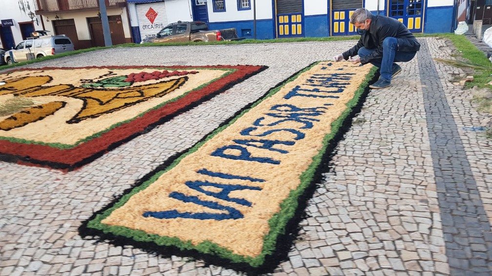 Mesmo com a impossibilidade da realização de grandes eventos públicos devido à Covid-19, integrantes do Conselho Municipal de Turismo e moradores da cidade seguem com a tradição que é marca da cultura da cidade. Com todos os cuidados para evitar a propagação do vírus, um único tapete foi montado na Praça Santa Rita, no centro histórico.