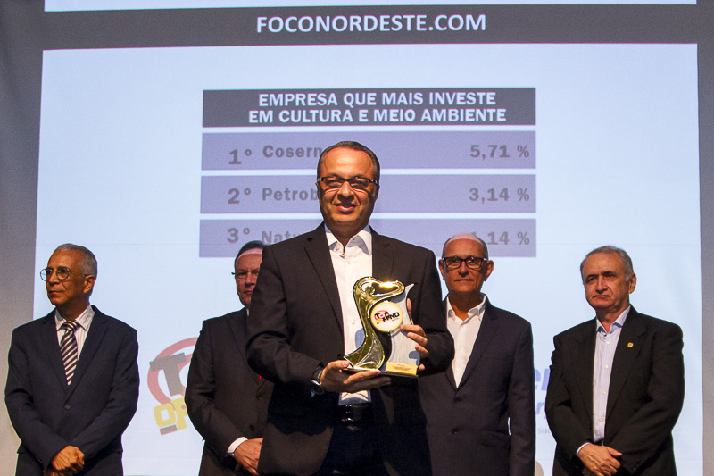 A Cosern, empresa do Grupo Neoenergia, foi premiada com o troféu Top of Mind 2017 como a empresa potiguar que mais investe nas áreas de Cultura e Meio Ambiente. Esta é a sétima vez que a Distribuidora potiguar é laureada com o troféu, entregue pela Revista Foco Nordeste aos 32 segmentos de mercado mais lembrados em entrevistas feitas pelo Instituto Smart Pesquisa de Opinião com 700 natalenses de 5 a 30 de abril em todas as regiões da capital. Prestigiaram a cerimônia o Diretor-Presidente da Cosern, Luiz Antonio Ciarlini, e a Gerente de Comunicação Institucional e Sustentabilidade, Karine Severo.