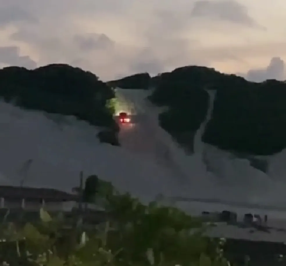 Vídeos gravados no fim da tarde desse domingo (14) no litoral potiguar mostram carros de grande porte e 4×4 subindo o Morro da Antena, uma duna que margeia a Lagoa de Jacumã. Segundo o Instituto de Desenvolvimento Sustentável e Meio Ambiente (Idema) , a subida de veículos no local é um crime ambiental.