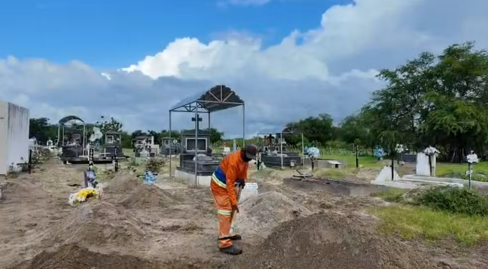 O cadáver não foi retirado da sepultura. A perícia identificou apenas sinais leves de chamuscamento.