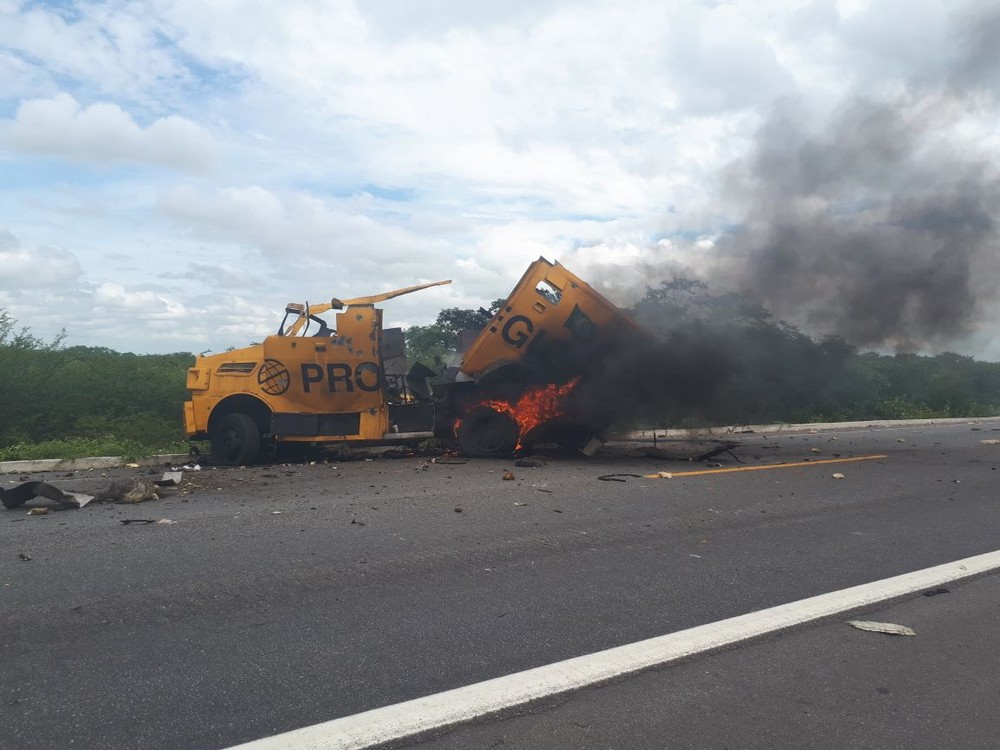 De acordo com a PRF, o crime aconteceu por volta das 9h30. Seis homens fortemente armados forçaram a parada do veículo com tiros e ameaças e renderam os vigilantes. Além de levarem todo o dinheiro que era transportado, eles acionaram explosivos que destruíram o carro.