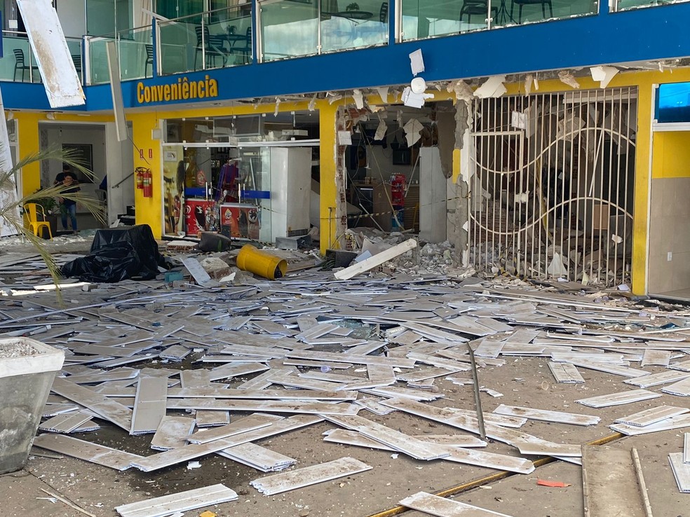 Criminosos invadiram um posto de combustíveis e destruíram parte do prédio ao usarem explosivos para abrir um cofre, na madrugada desta segunda-feira (6), em Tangará.