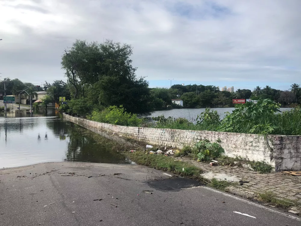 A lagoa de captação do conjunto Pirangi transbordou e alagou as duas vias do cruzamento, um dos principais da região, no fim de semana entre os dias 2 e 3 de julho. No entanto, a via segue interditada até esta segunda-feira (11).