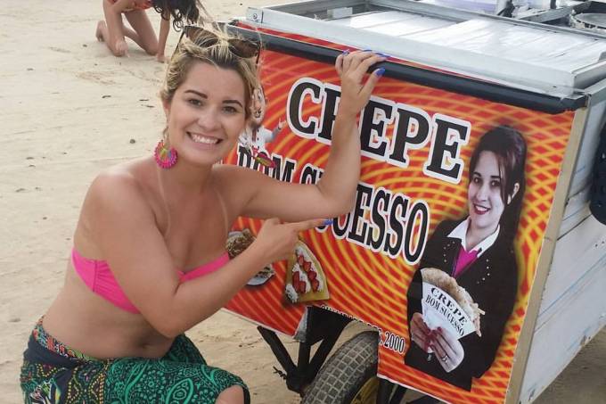 A jornalista curitibana Francielly Azevedo viveu uma situação no minimo inusitada na última quinta-feira, enquanto passava férias em Natal (RN). A repórter do canal de TV da Assembléia Legislativa do Paraná foi surpreendida por uma foto sua estampando um carrinho de crepe, parado bem na sua frente, enquanto descansava nas areias da praia de Ponta Negra. A imagem era de uma reportagem que havia feito quando era produtora na emissora, em 2013, e circulava em uma montagem sem que ela soubesse. Francielly demorou a acreditar que estivesse vendo a si mesma. Foi contar o caso ao vendedor, que não lhe reconheceu, e saiu em busca de uma conexão wi-fi para baixar a imagem original de seu Facebook. Em seguida, voltou à praia e – depois de procurar bastante – foi falar novamente com ele, que saiu correndo, amedrontado, pedindo que ela não chamasse a policia.