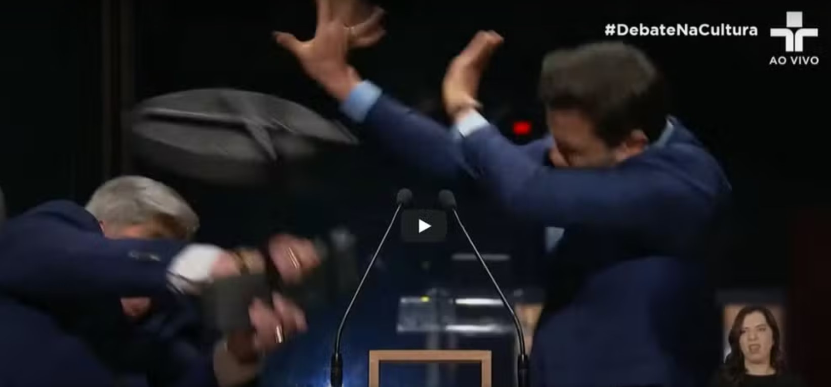 Um vídeo publicado no Instagram da jornalista Monica Bergamo, da “Folha de S.Paulo”, mostra os momentos seguintes à agressão. As imagens registraram Datena e Marçal sendo separados e trocando ofensas. Marçal, então, voltou ao púlpito.