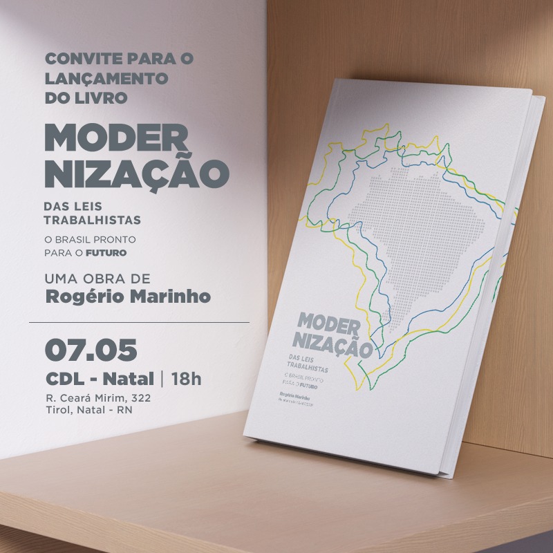 Hoje (07) na sede da CDL, o Deputado Federal Rogério Marinho fará o lançamento do seu livro sobre Reforma Trabalhista, às 18h.