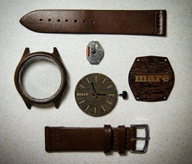 O estalo para investir no desenvolvimento de relógios sustentáveis veio na época dos preparativos da Olimpíada, época em que se viam caçambas atulhadas de restos de obras em todo canto da cidade. Formado em design industrial e com um estágio em uma fábrica de mobiliário, João fez seu primeiro protótipo com madeira, porém ainda usando couro e resina. Acionou uma rede de contatos ligados ao trabalho com reaproveitamento de materiais, como a Mancha – sobre a qual já falamos aqui – e chegou a um modelo ideal, com os mostradores feitos com tinta orgânica em papel kraft, e as pulseiras com câmaras de pneu ou tecidos de lona reciclada.