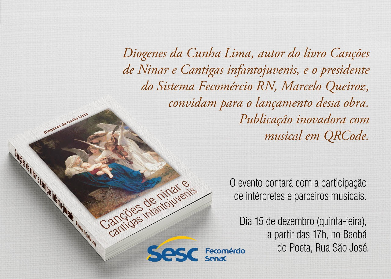 Nosso colunista, o advogado e escritor, Diogenes da Cunha Lima, lança nesta quinta-feira (15), seu mais novo livro, “Canções de Ninar e Cantigas infatojuvenis”, a partir das 17h, no Baobá do Poeta, na Rua São José.