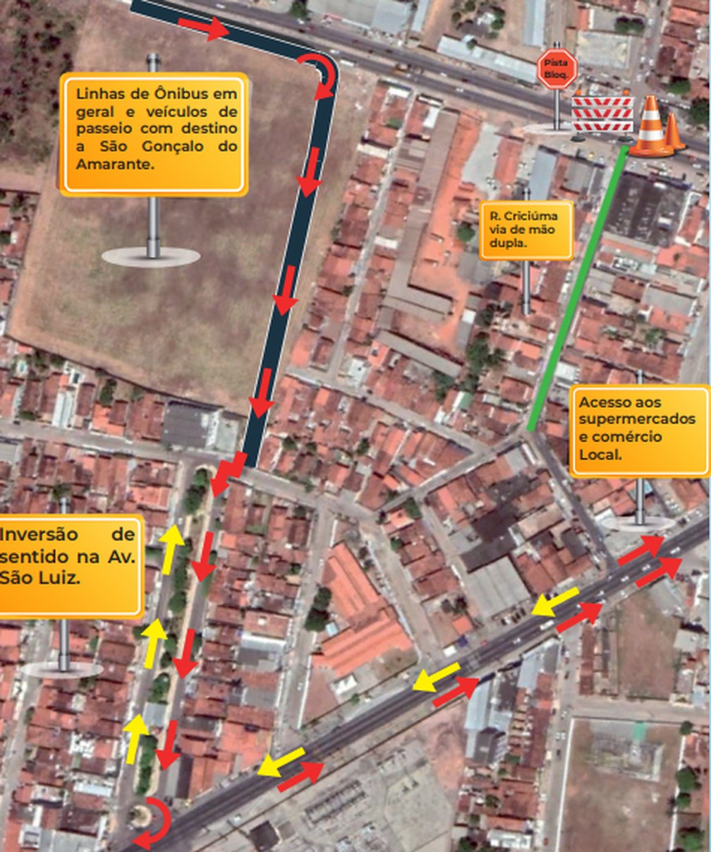 De acordo com Dnit, quem vai de Ceará-Mirim para São Gonçalo do Amarante vindo pela Av. Tomaz Landim deverá entrar no acesso pelo Pátio de Vigas, pegar a Avenida São Luiz e, em seguida, a Avenida Benedito Santana.