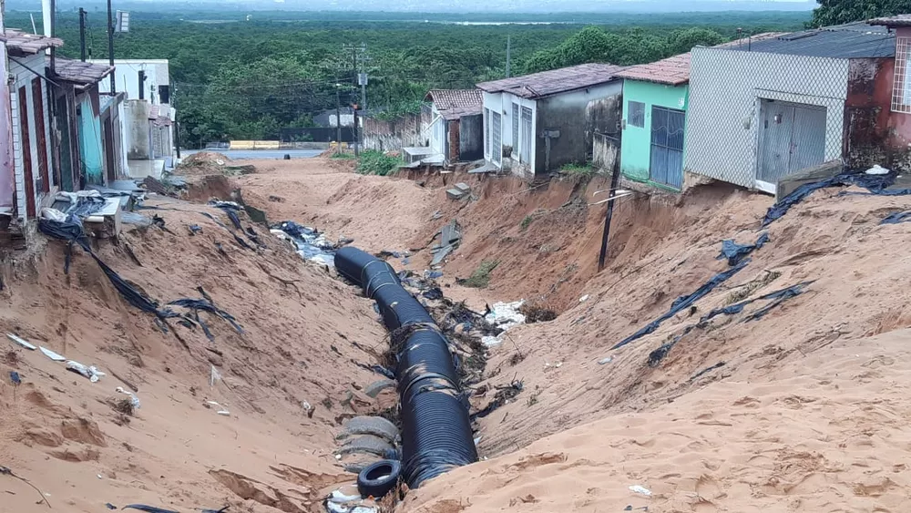 A rua foi destruída pelas fortes chuvas que caíram em Natal, no início do mês de julho e está recebendo uma intervenção inicial para a colocação dos tubos de drenagem. Pelo menos 31 famílias tiveram suas casas atingidas. 23 estão recebendo aluguel social.