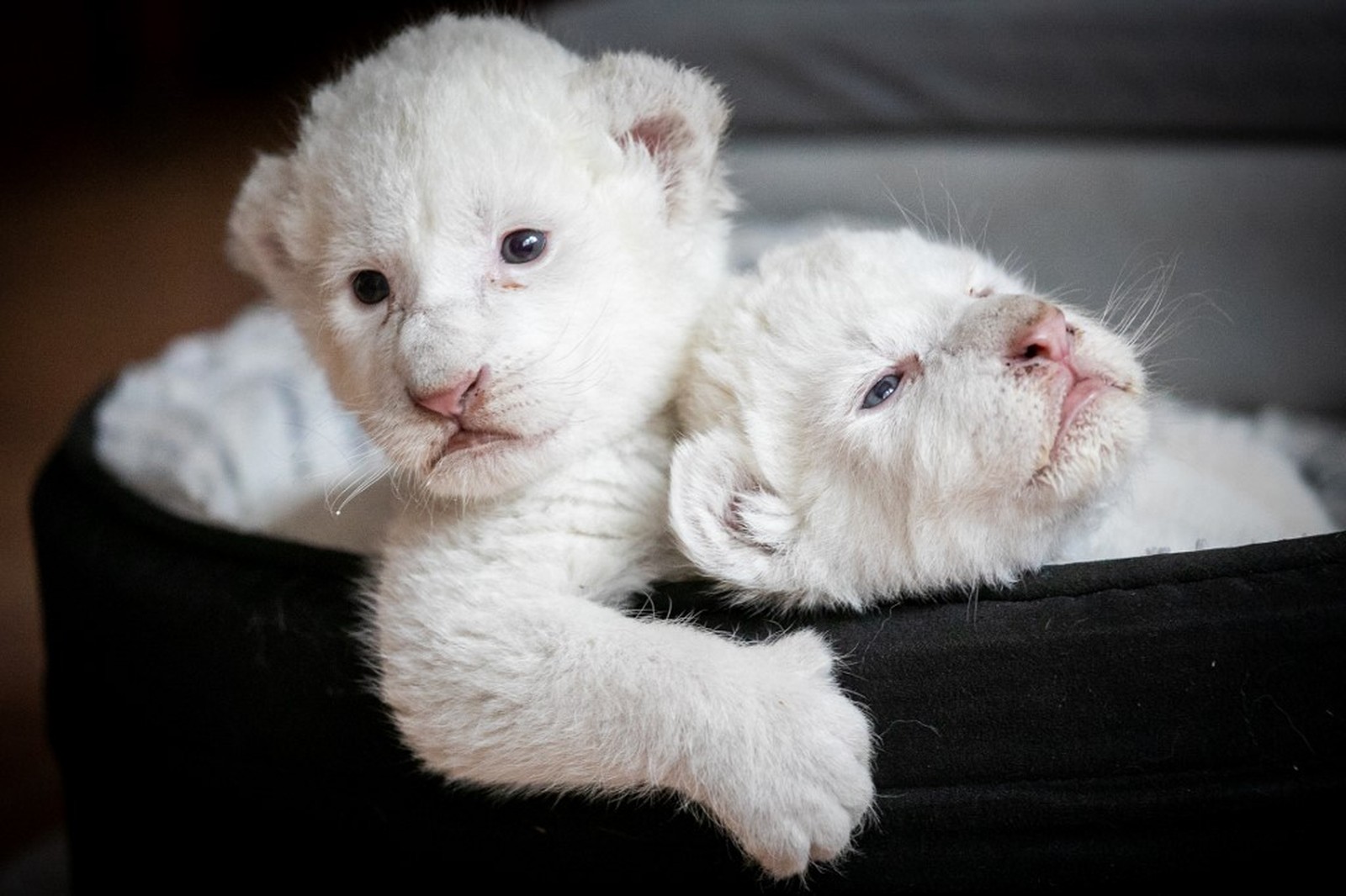 Dois raros leões brancos nasceram em 28 de julho no santuário “Caresse de tigre”, no nordeste da França. A agência France Presse informou nesse domingo (11) que essas fofuras foram batizadas em homenagem ao casal protagonista do filme O Rei Leão, Nala e Simba.