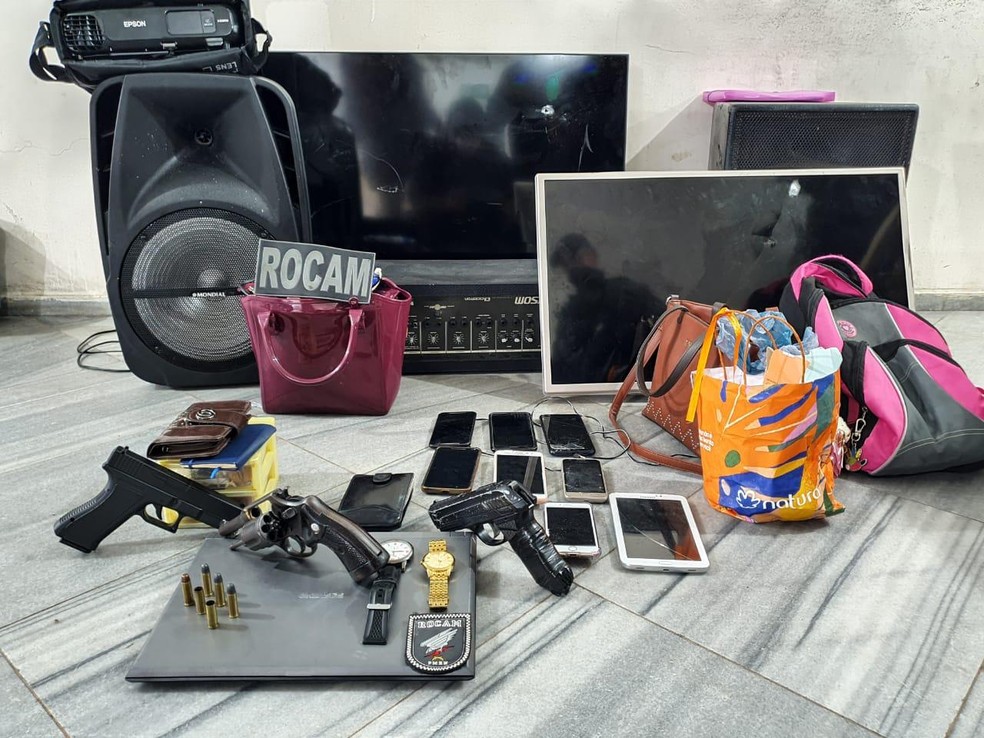 Uma arma de fogo e dois simulacros (armas falsas) também foram apreendidos.