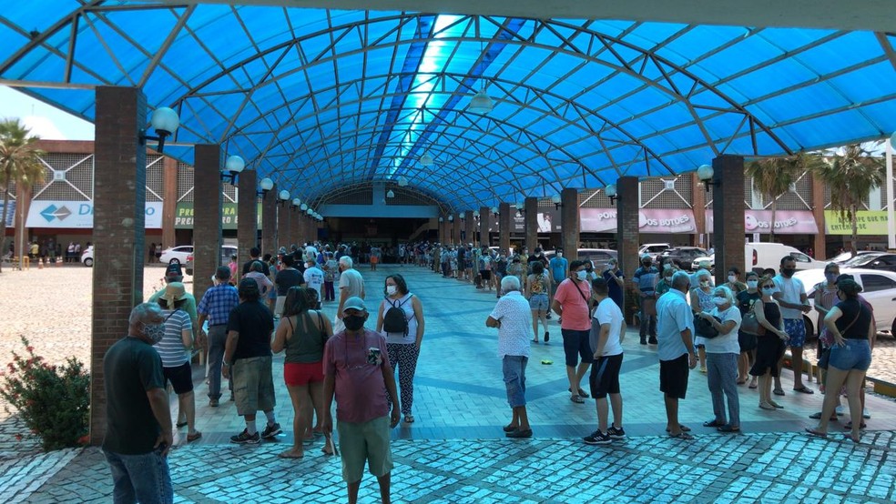 O dia amanheceu com filas enormes e muita confusão no trânsito na região do Shopping Via Direta, onde funciona o único ponto de vacinação contra Covid-19 aberto pela prefeitura de Natal nesse domingo (14). Houve registro de aglomeração e muita reclamação sobre a organização das filas.