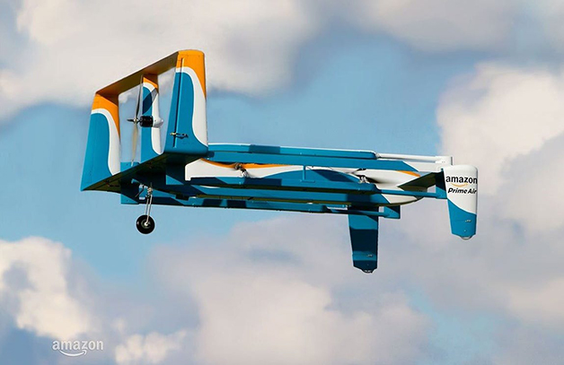 A primeira entrega por drone da Amazon foi realizada em 2016, e da compra ao produto nas mãos do cliente foram somente 13 minutos. A empresa de Jeff Bezos, dono da Amazon e homem mais rico do mundo, lançou um vídeo mostrando um exemplo de como o serviço poderá se dar, estrelado por um veículo não-tripulado em imagens reais. Segundo a FAA, é fundamental a garantia de que tais sistemas serão operados com segurança.