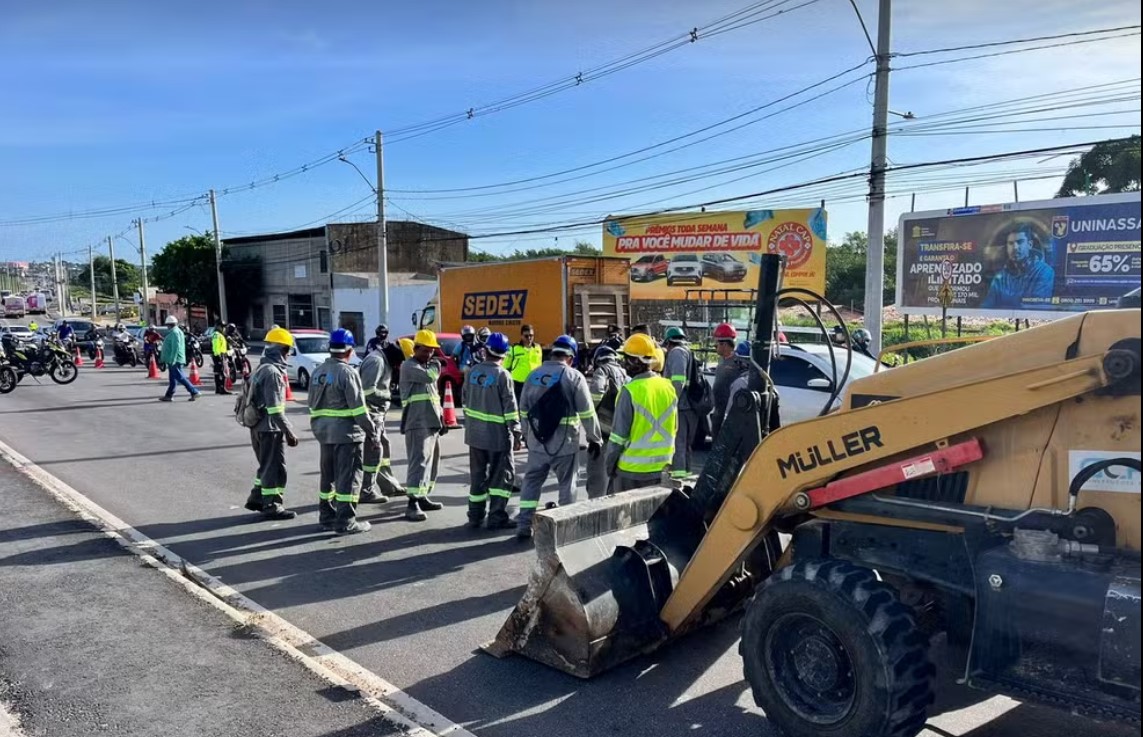 Duas faixas da Avenida Felizardo Moura, na Zona Oeste de Natal, foram interditadas após um afundamento na pista. Para minimizar os transtornos no trânsito, a Secretaria de Mobilidade Urbana ampliou o número de faixas na via para quem sai da Zona Norte na manhã desta terça (11).