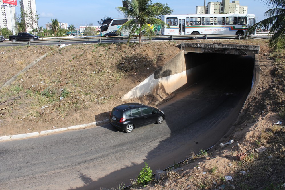1. Os veículos que utilizam o referido túnel para acesso ao bairro de Neópolis, podem utilizar, dentre outras alternativas, as sugestões de desvio: Av. Ayrton Senna, Rua Pantanal ou Av. dos Pinheirais;