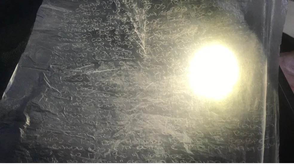 As mensagens eram escritas nas embalagens da alimentação com pontas afiadas das escovas de dente. “Identificamos que o interno tentou repassar ordens utilizando o saco plástico que protege a alimentação. A Seap irá coibir a utilização desse material”, afirmou Samuel.