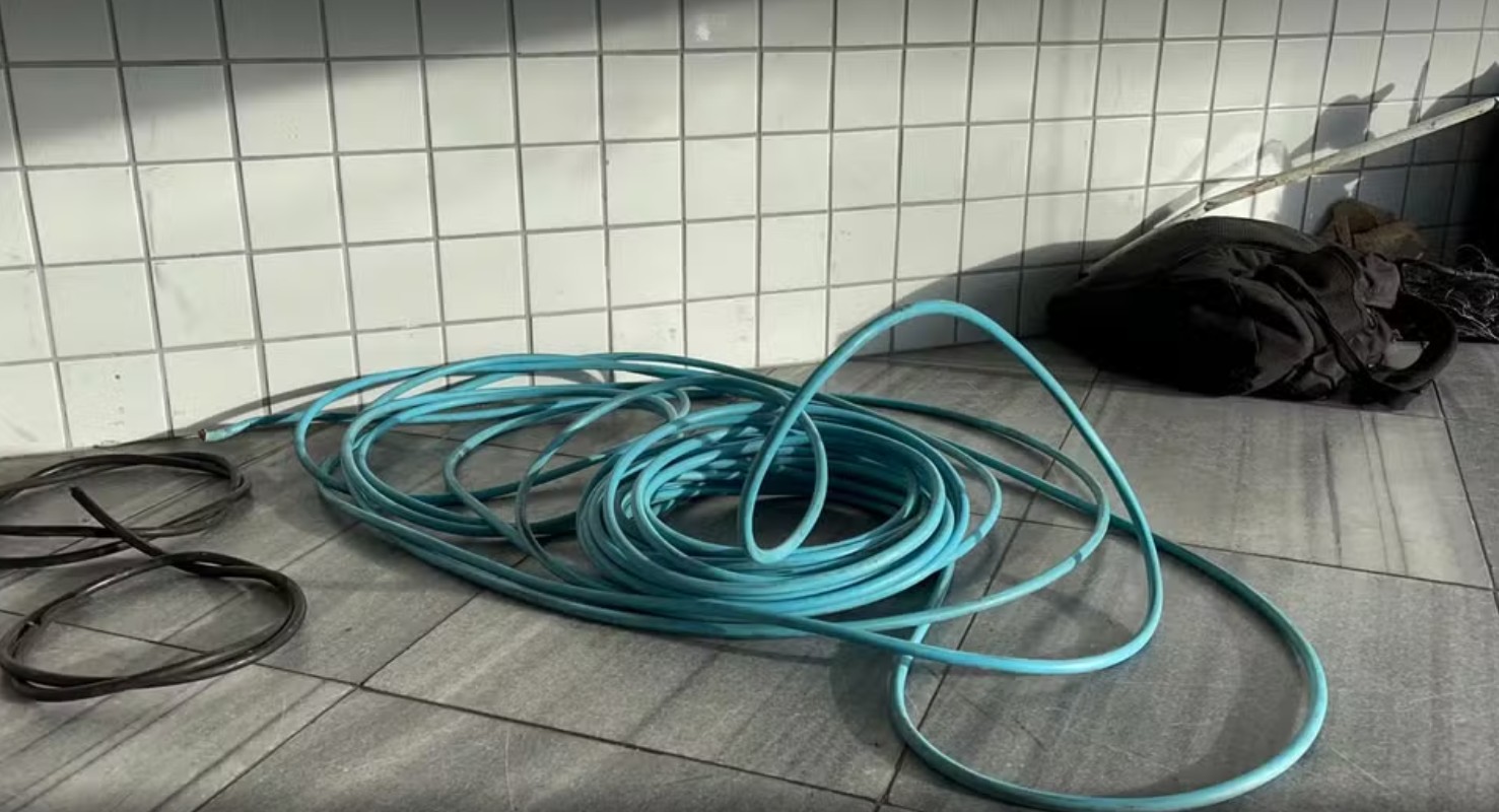 Os suspeitos também estavam com uma faca de serra de cozinha, usada, segundo a polícia, para cortar os fios.