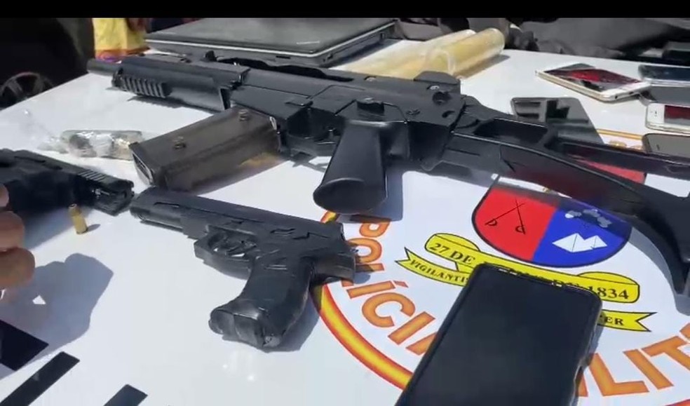 Além das armas, foram apreendidas quatro porções de maconha e duas máscaras do tipo balaclava que, segundo a polícia, seriam usadas para assaltos.
