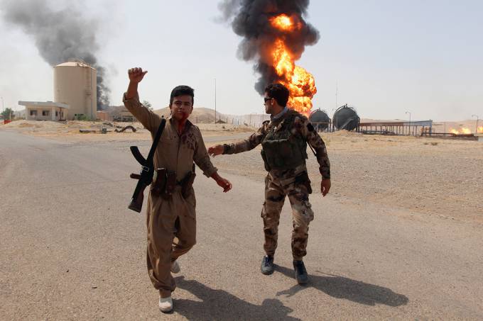 O Estado Islâmico assumiu a responsabilidade por dois ataques em um campo de petróleo e uma estação de gás no Iraque neste domingo, que deixaram ao menos cinco mortos. Quatro homens-bomba atacaram o campo de petróleo de Bai Hassan , um dos maiores da região de Kirkuk e que produz mais de 175.000 barris por dia. Três dos autores do ataque morreram, um deles conseguiu escapar. Um incêndio começou poucas horas depois que o primeiro homem se explodiu, destruindo dois tanques. Mais cedo, outro grupo de militantes invadiu uma estação de compressão de gás a cerca de 30 quilômetros de Bai Hassan. Eles mataram quatro funcionários da companhia estatal North Oil Co. e destruíram o local com explosivos, segundo reportaram autoridades iraquianas.