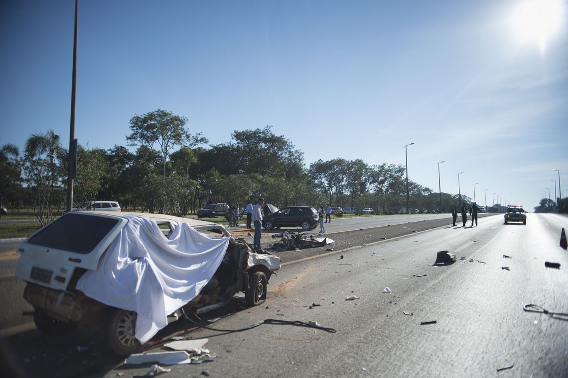 BRASÍLIA, DF, BRASIL, 26-06-2014, 08h30: Acidente envolvendo dois carros no Eixão Sul, em Brasília, deixou 4 feridos e uma vítima fatal. (Foto: Marcelo Camargo/Agência Brasil)