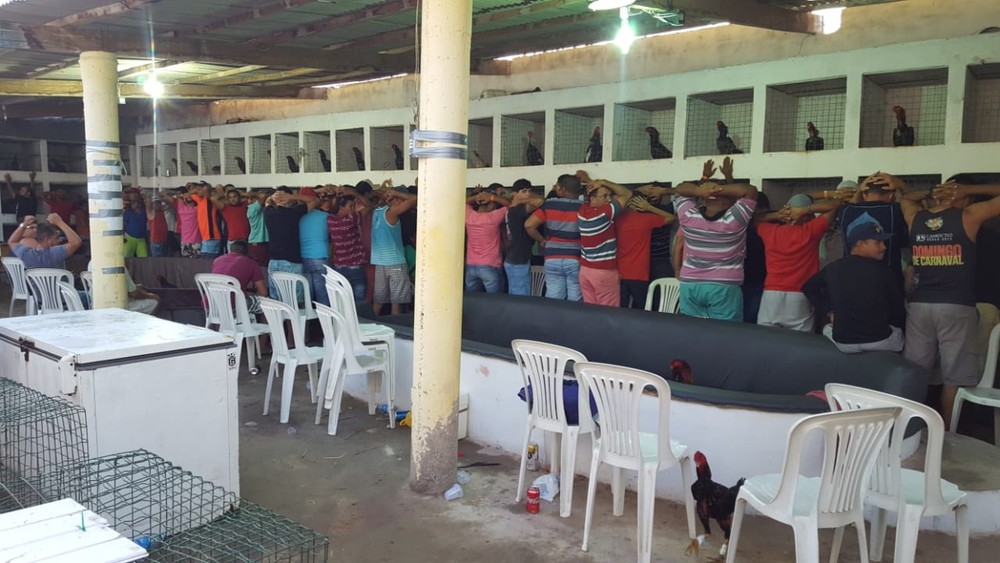 Uma ação conjunta das polícias Civil e Militar que aconteceu no sábado (27) resultou na detenção de mais de 90 pessoas que participavam de uma rinha de galo no município de Macau, na Costa Branca potiguar. No local, foram apreendidos 167 galos, ferramentas para realização de cirurgia nos animais e um caderno com anotações de apostas.