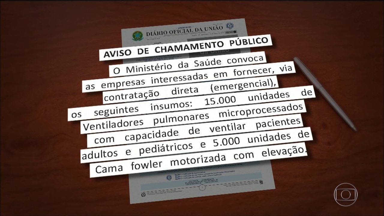 Também na quinta (26), o Ministério da Saúde publicou uma edição extra do Diário Oficial com um chamamento para que empresas interessadas forneçam 15 mil ventiladores pulmonares e 5 mil camas motorizadas de forma emergencial.
