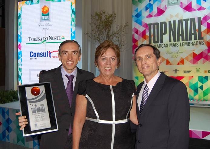 Na noite desta ultima quinta-feira (08) a Miranda Computação recebeu o prêmio Top dos Tops como marca mais lembrada dentre todos os segmentos do comércio em Natal no ano de 2012. O prêmio, promovido pela Consult Pesquisa e Tribuna do Norte, foi entregue pela governadora Rosalba Ciarlini durante solenidade no Olimpo Recepções aos diretores Afrânio e Paulo Miranda. Na ocasião, a empresa também recebeu pelo 9º ano consecutivo o Top Natal de Informática como a marca mais lembrada da categoria, com 72,5% de lembrança dos natalenses.