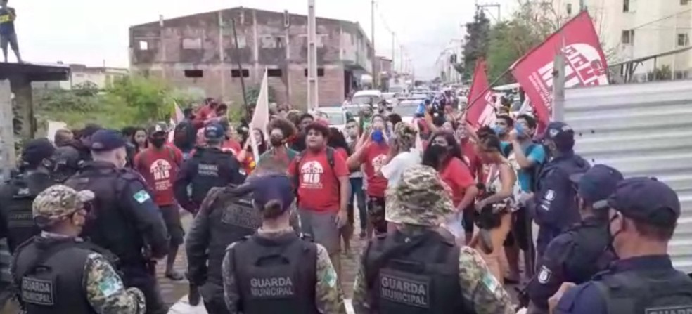 Os manifestantes do Movimento de Luta nos Bairros, Vilas e Favelas (MLB) estavam no local e tentaram entrar na área reservada para a entrega simbólica das chaves. Eles derrubaram uma grade de proteção e houve confronto com a PM e a Guarda Municipal.