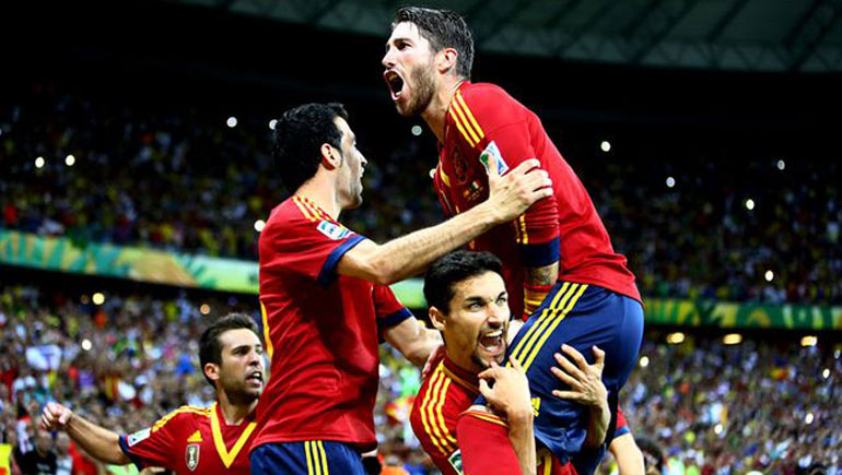 Nesta quinta-feira, no Castelão, em Fortaleza (CE), pela semifinal da Copa das Confederações, após 0 a 0 no tempo normal, a Espanha venceu por 7 a 6 nos pênaltis a Itália e garantiu vaga na final contra a Seleção Brasileira, no próximo domingo (30), no Maracanã.