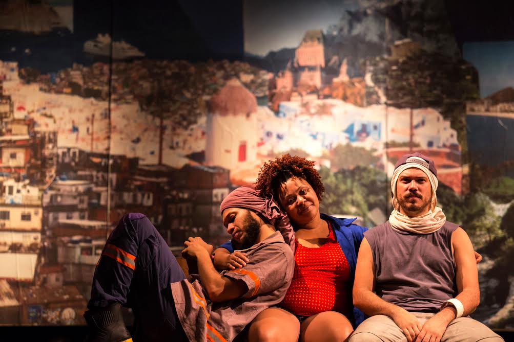 O espetáculo gravita entre questões ideológicas dos personagens, revelando o impasse que vivem os moradores de favela entre ficar ou sair de um território que ao mesmo tempo os acolhe e os oprime.