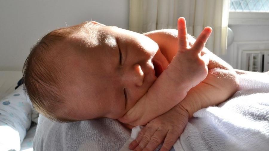 Na publicação, o filho recém-nascido da apresentadora mandou um sinal de “paz e amor” aos seguidores da mãe.