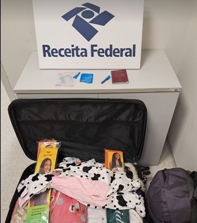 A prisão aconteceu durante uma fiscalização de rotina para viagens internacionais. Os agentes da Receita Federal suspeitaram da bagagem do passageiro, que tinha, além das roupas, muitas fantasias infantis.