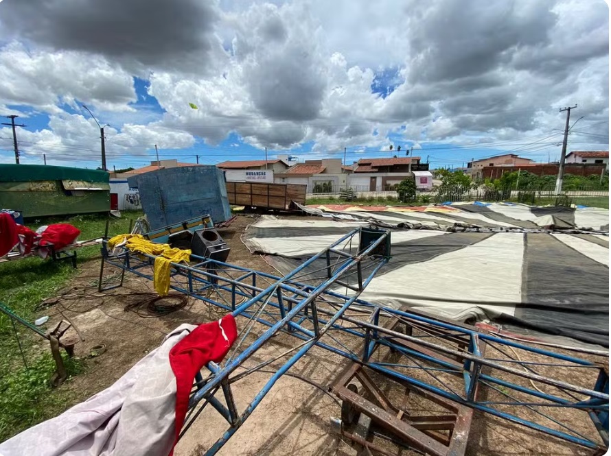 Os artistas ficaram sabendo do acidente enquanto faziam uma apresentação em uma escola. “Quando a gente chegou na frente do circo, a cena já era lamentável, o circo realmente todo destruído no chão”, lamentou Priscila Oliveira.