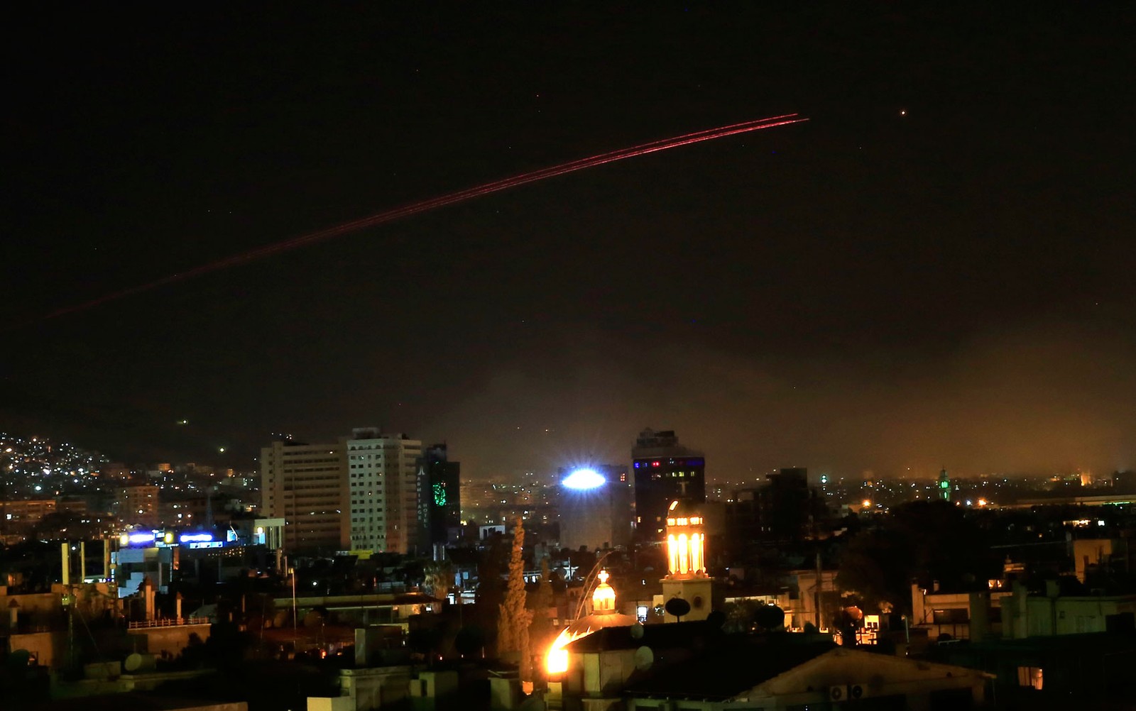 O Pentágono anunciou que três alvos foram atingidos na Síria: um centro de pesquisa e produção de armas químicas e biológicas em Damasco, um armazém de armas químicas a leste de Damasco – em que os EUA acreditam estavam que estoques de gás sarin – e outra instalação vizinha.