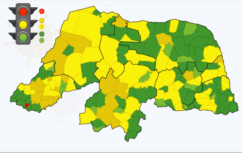 O último levantamento semanal publicado pela Secretaria Estadual de Saúde, no dia 20 de julho, apontou que mais da metade das cidades potiguares estão na cor verde. Veja aqui.