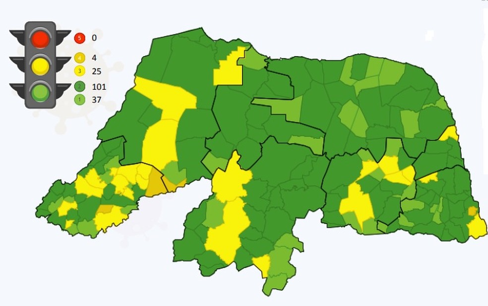 O último levantamento semanal publicado pela Secretaria Estadual de Saúde, no dia 2 de agosto, apontou que 138 cidades potiguares estão na cor verde. Veja aqui.
