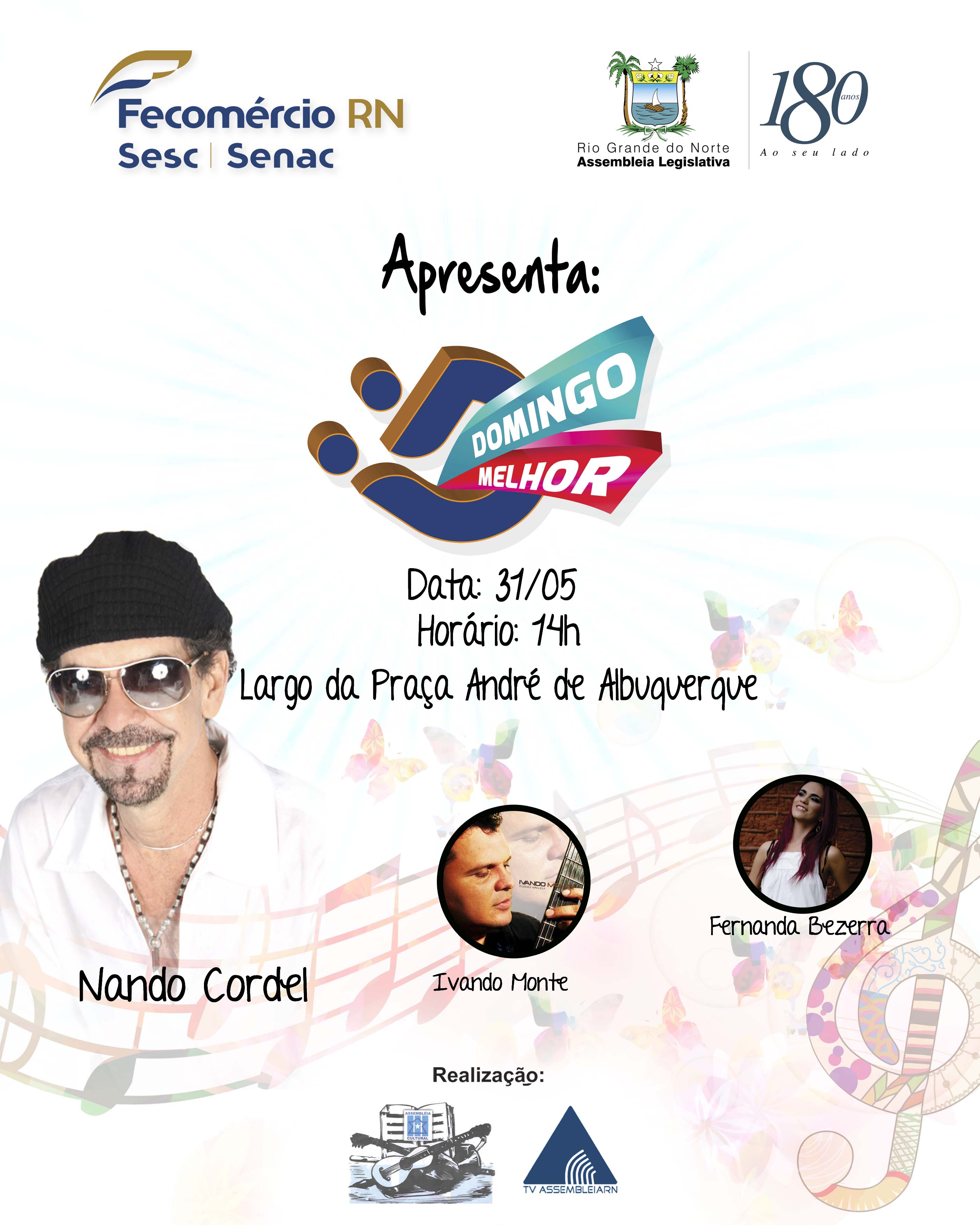 Música, lazer, cultura e gastronomia vão estar presentes amanhã (31) no lançamento de um novo formato para o consagrado projeto cultural Domingo Melhor, feito em parceria pela Assembleia Legislativa e o Sistema Fecomércio RN. O projeto vai levar atrações musicais, espaço gastronômico e lazer para a população a partir das 14h, ao lado da Praça André de Albuquerque.