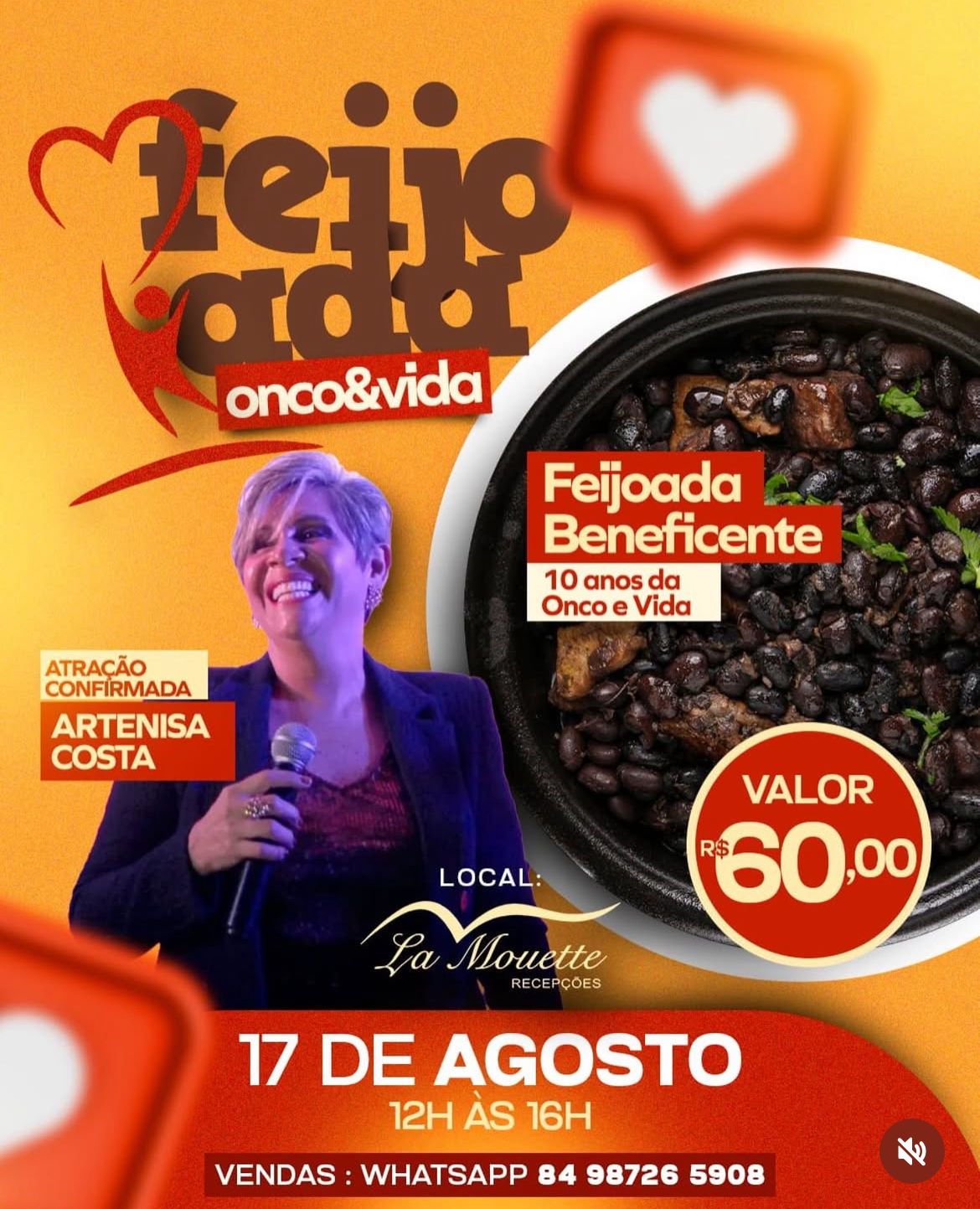 Feijoada Beneficente Onco&Vida em comemoração aos nossos 10 anos de amor e cuidado, preparamos um evento especial pra reunir sabor, música e solidariedade!
