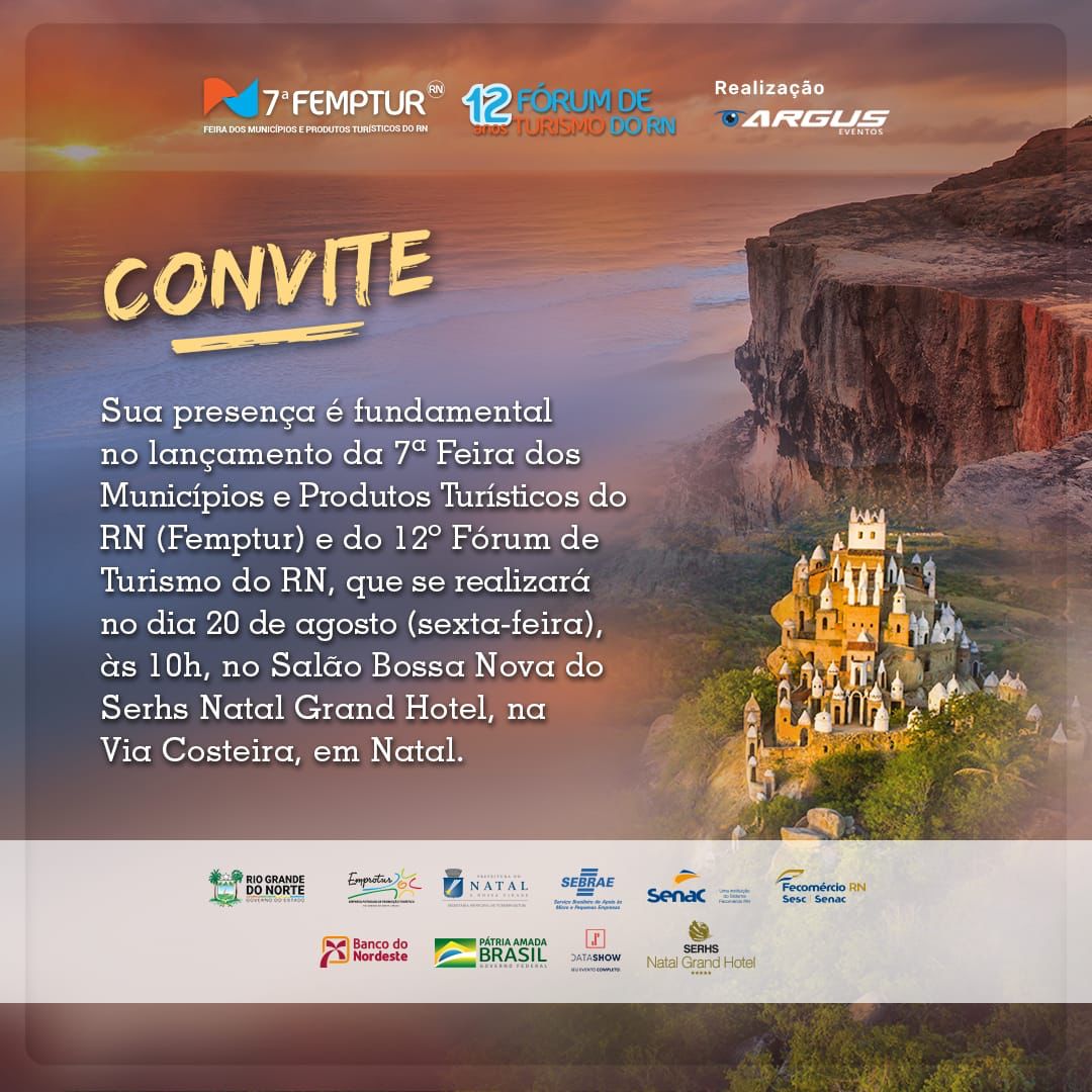 Femptur e Fórum têm realização da Argus Eventos e apoio da Secretaria de Turismo do Rio Grande do Norte, Emprotur, Secretaria de Turismo de Natal, Sebrae RN, Fecomércio-RN e Banco do Nordeste, além da Data Show Brasil e Serhs Natal Grand Hotel.